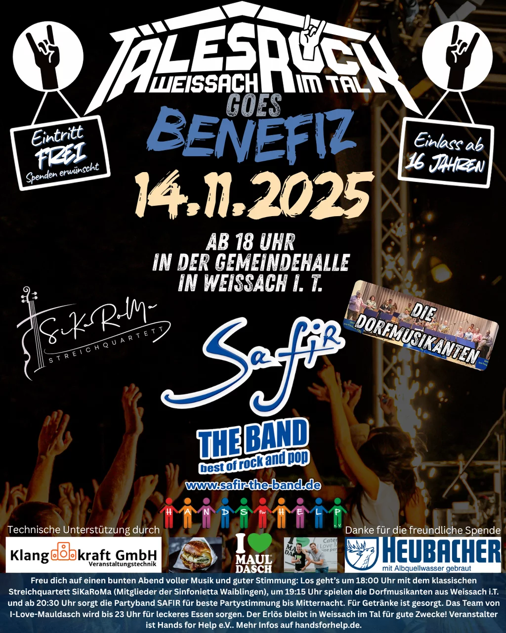 Kommt vorbei, genießt großartige Musik und unterstützt dabei Menschen aus unserer Region – gemeinsam helfen wir vor Ort!